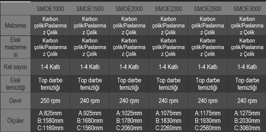 Titreşim frekansı, genlik ve eğim açıları üretim hattına göre ayarlanabilir. Bu sayede, farklı yoğunluk ve nem oranına sahip hammaddeler optimum performansla sınıflandırılır.